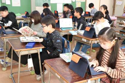 3年生社会・昔調べの様子です。豊富な図書資料をしっかり読み込み、それぞれ調べています。私のアルバムにある私が小さい頃の生活や世の中を映した写真と同じような写真が本に載っていて、そうか「昔」なのだなあ〜としみじみ思います。