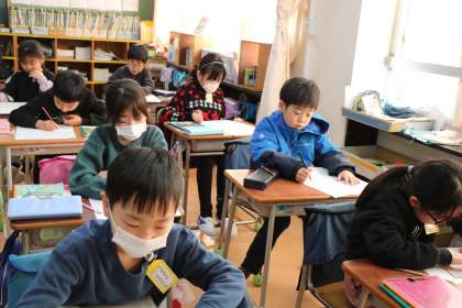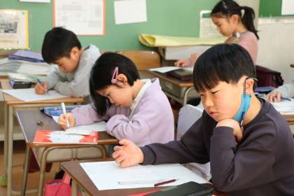 3年生国語「ありの行列」の学習の様子です。「こ・そ・あ・ど」や文末表現について、一つ一つ確認します。説明文を正しく読み取るには大切なことです。