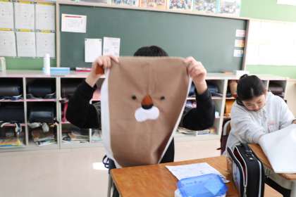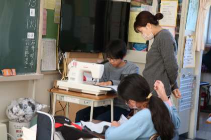 6年生家庭科、クッション作りの様子です。ミシン縫いも先生2名で集中して行います。