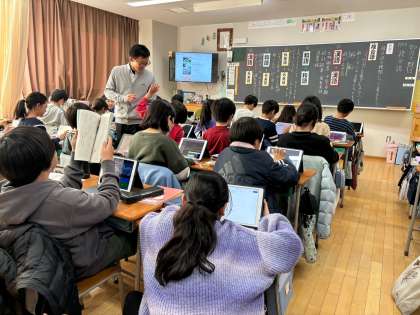 山野小学校は学級数30以上の大きな学校です。どのクラスも真剣に学び、来客の先生たちに会釈をしたり、たくさんの先生たちにびっくりしたり、とっても素直なかわいい子どもたちでした。
