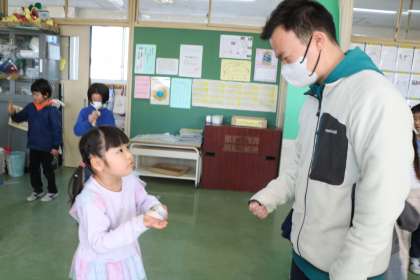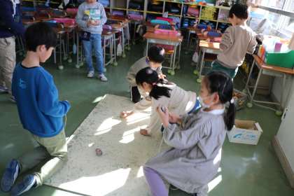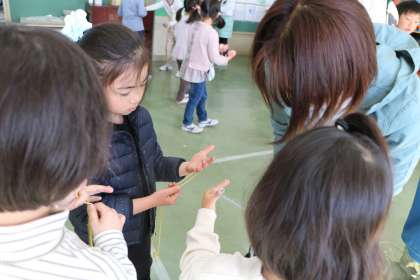先生も一緒にあやとりを研究したり、こままわしやお手玉に挑戦したり頑張っています。