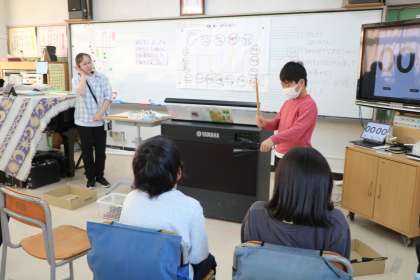 自分が試して見つけた音をみんなに聞いてもらいます。どんな曲になるか楽しみです。