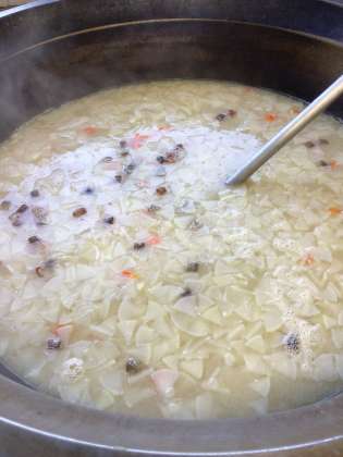 三平汁は北海道の郷土料理です。北海道産の鮭を焼いてから汁物に入れています。