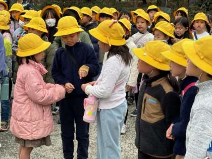 たくさん遊んだあとは、地域の皆様にお礼の歌や詩の朗唱をプレゼントしておしまいです。写真は2年生の様子です。2年生は「ずいずいずっころばし」と「手まりつき」2曲のわらべ歌を実演付きで合唱しました。