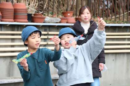 遊びを準備してくださった地域の方や参観にお集まりいただいた保護者の方が、コツを教えてくださったり、修理してくださったりしたので子どもたちは色々な遊びを楽しむことができました。