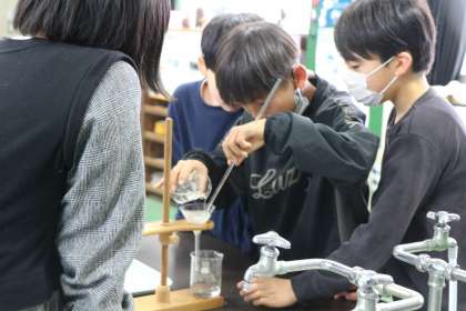 5年生理科「水溶液に溶けているものを取り出すには」の様子です。それぞれ班で仮説を立てながら実験に臨みます。今日は、濾過する・・・ということを学びました。