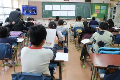 3年生国語「伝わる言葉で表そう」の様子です。伝えたいことを相手によりよく伝えるにはどうしたらよいだろう。「すごかった。」「おもしろかった。」などと表現する子は多くいます。そのため教科書に書いてある冒頭の「何がどうすごかったのか、おもしろかったのかがあいてにつたわりません。」という言葉は子どもに驚きと納得感をもって受け止められたことでしょう。