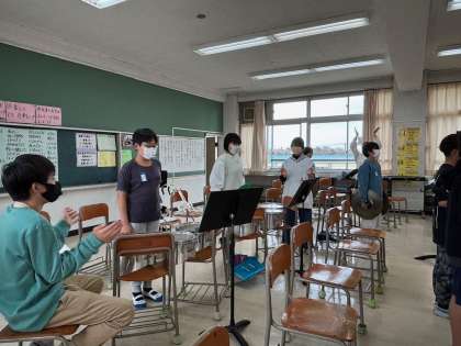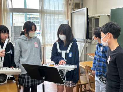 ただ音を出すだけでなく、曲の調子、強弱などを考えながらの演奏です。6年生に