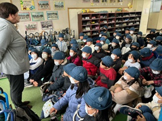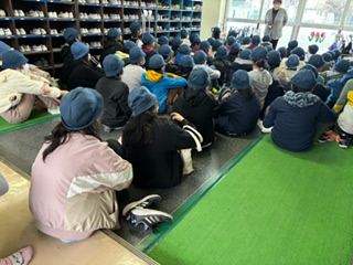 子どもたちが毎日手にする楽器もあり楽しみです。昇降口で最後の確認です。