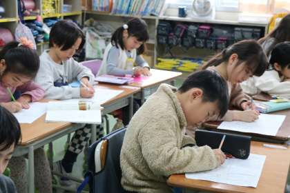 外遊びもできない日が続いていますが、落ち着いて教室で過ごしている砧っ子です。