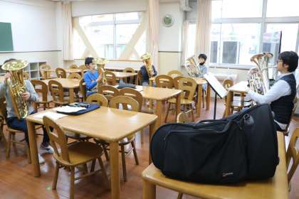 「ユンフォニアムは姿勢が大切。そしてその姿勢で膝の上に置き・・・こうやって吹く・・」と一つ一つご指導いただくと、本当に!音が全然違うのです。