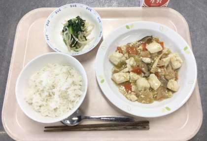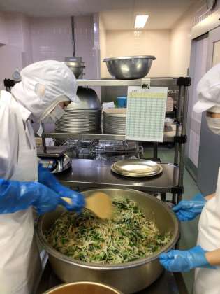 給食室で炒めているときに、学校中においしそうないいにおいがしていました。