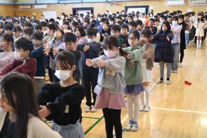 全校朝会での整列の仕方はどの学年もとても上手です。そして静かです。