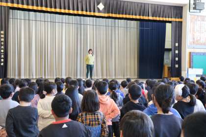今日の私の話は、「目立たないことでも頑張っている人」の話をしました。自分は人に褒められなくても、人に認められなくても自分で決めた頑張ることをしっかりやっているかな?周りの友達で目立たないことでも頑張っている友達を見つけて、すごいなあ、ありがたいなあと感謝の気持ちをもっているかな?振り返り反省することがあればまだまだチャンスはあります。残り1か月、目立たないことでも自分に厳しく頑張る毎日を過ごしてほしいです。