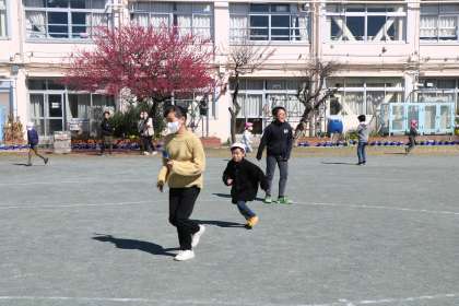 ころがしドッジボールや鬼ごっこで遊んでいます。