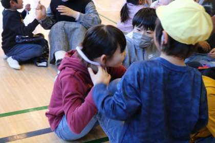 5年生も首にかけてもらい嬉しそうです。