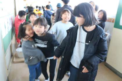 4年生が1年生のお迎えに行くのも今日が最後です。