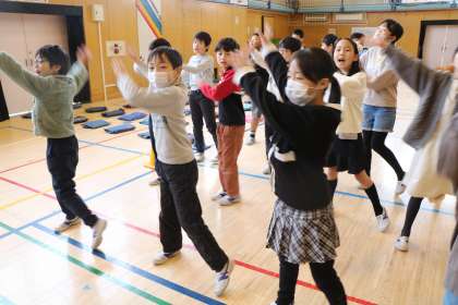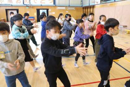 3年生は、学芸会で歌って踊った曲で6年生へのプレゼントを考えました。
