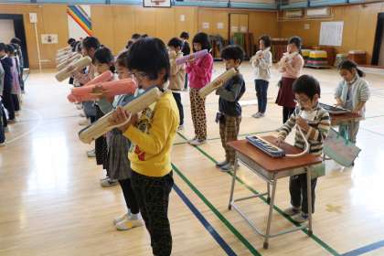 1年生のリハーサルの様子です。写真で先にどんな出し物かわかってしまうと6年生のお楽しみがなくなってしまうので控えめに。詳細はお子さんから聞いてください。