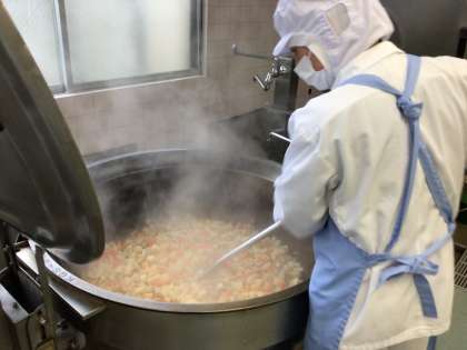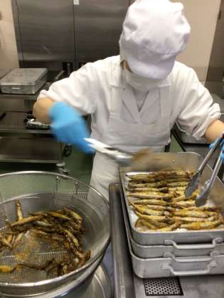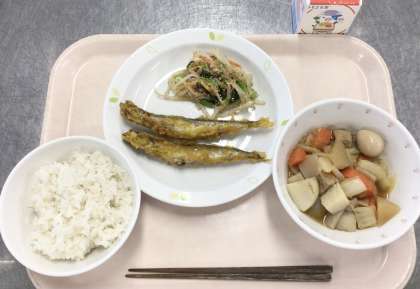 ししゃもは骨ごと食べられるためカルシウムを多くとることができる食品です。ししゃもにカレー粉の衣をつけて油で揚げた「カレー揚げ」を作りました。こどもたちから人気のある献立です。成長期にしっかりカルシウムをとってじょうぶな骨をつくりましょう。