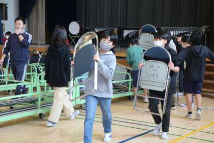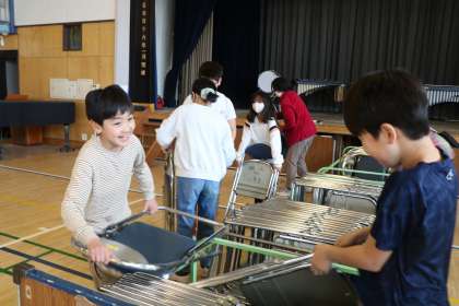 今日は5年生が卒業式会場準備第一弾。会場に椅子を出し、床をきれいにし、ひな壇を並べて6年生の場所を作ります。今年の5年生は2学級だからと、先生たちもたくさん応援に来てくれました。