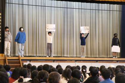 問題の後半では6年生各クラスから一人指名され舞台の上で、すごいところを紹介されます。
