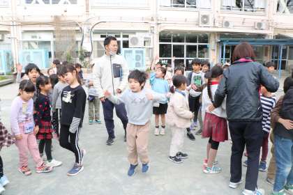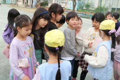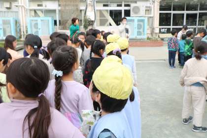帰っていく保育園・幼稚園の子たちを最後までお見送りしていました。もうすぐ2年生!楽しみです。