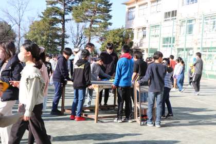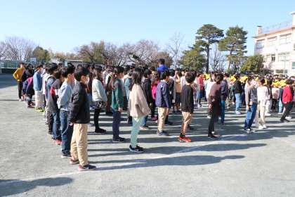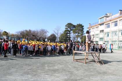 6年生が朝礼台を準備し、時間前に整列が完了です。全員で元気に全校朝会ができることに感謝です。