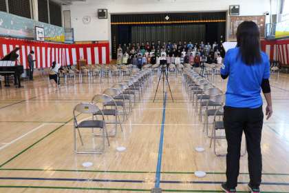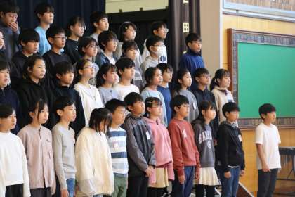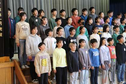 6年生卒業式の練習の様子です。卒業証書授与の後、門出の言葉をひな壇に立って言います。今日はその練習です。