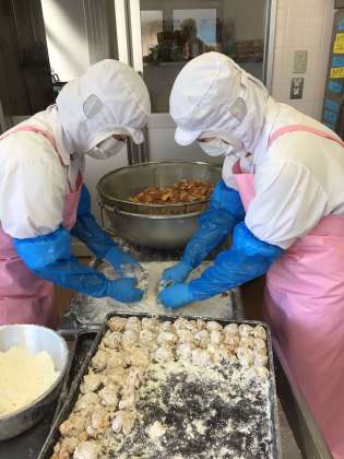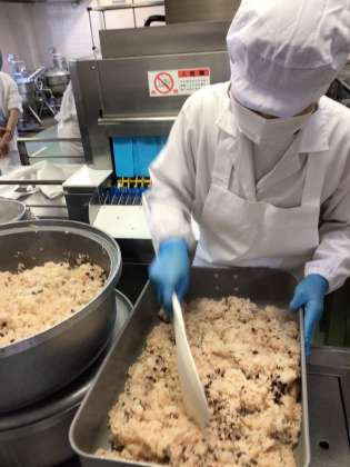 6年生卒業お祝い献立として給食室でお赤飯を炊きました。
