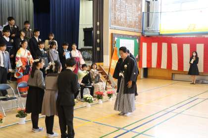 担任の先生へ、子どもたちだけでなく会場の保護者の皆様からも大きな拍手が起こりました。