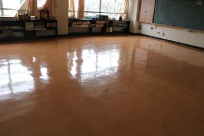 教室は主事さんたちがピカピカに磨きワックスをかけてくれました。これから机いすを並べて準備を整えていきます。