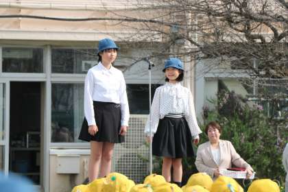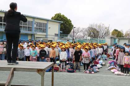 その後6年生代表児童の言葉、担任発表、校歌斉唱と続きました。