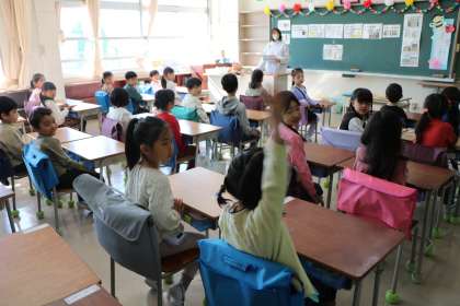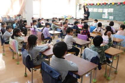 私は1年生の教室をはじめ、毎日すべての教室を回っています。姿勢正しく先生の話を聞いている子どもたちに感激です。砧小の1年生は、みんな勉強が大好きな子どもたちに見えます。