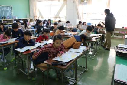 新しい教科書を見ながら先生が言う国を探したり、自己紹介カードを基にスピーチをしたり、学習も始まっています。子どもたちを楽しく学びたいことへ導いていく、先生たちの周到な準備が感じられます。砧の先生たちのすごいところです!