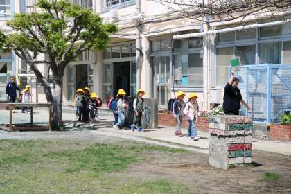 1年生の下校の様子です。明日も安全に気を付けて元気に登校してください。待っています。