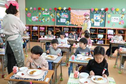 「せんせいのはある?」と、担任の先生のことも心配してくれる子もいました。子どもたちが食べ始めたら先生も一緒にいただきます。