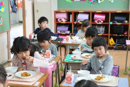 家で食べる味とは違うもの、初めて食べる献立もあるかと思います。栄養士さんや調理員さんたちが心を込めて考え、作ってくださるので、いろいろな食材・料理を経験してほしいです。