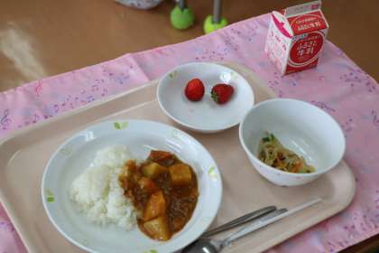 今日は避難訓練があったので、子どもたちが避難訓練を参観に行っている間に配膳を始めてくれました。