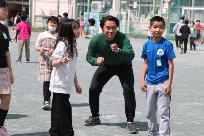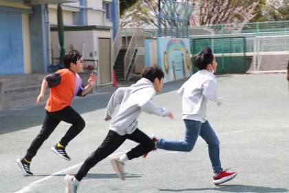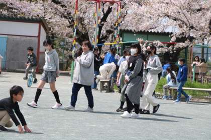 砧小学校では先生と一緒に遊ぶ共遊びを推奨していますs。友達と遊ぶのも楽しいけれど、先生も一緒だともっと楽しいです。