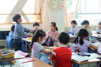 友達が発表しているときの聞く姿勢もとっても上手な2年生です。発表する友達の方に顔や体を向けて聞いています。このような学級は、安心して自分の意見が言えますね。
