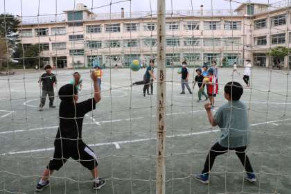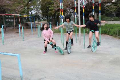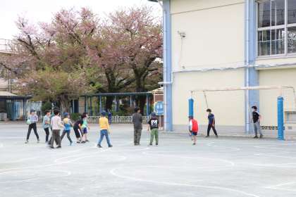 砧小学校では、朝の支度を終えたら外遊びを推奨しています。学習を始める前に、体を動かしわくわく、どきどきを体験すると、脳の前頭葉が活発になり学習への集中力が高まります。写真は今朝の朝遊びの様子です。