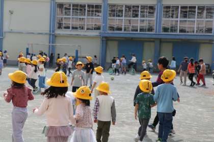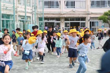 ランランランの音楽が流れ始めました。6年生が「さあ!みんなで走るよ〜」と声をかけています。