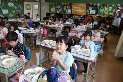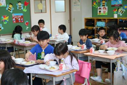 4/17 1年生給食の様子をお届けしますー4