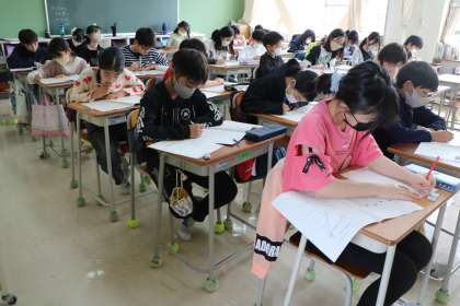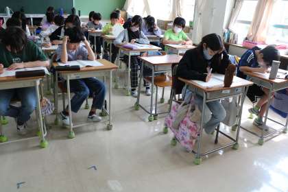 6年生の様子です。6年生今日は全国学力調査、国の学力調査です。