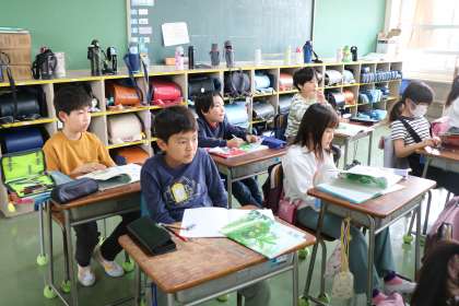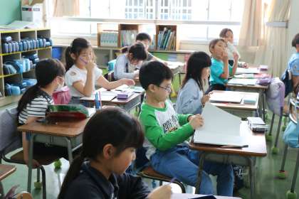 3年生国語「わたしのさいこうの一日」の学習の様子です。自由に想像を広げ書く内容を選んだり、どんな言葉を使って出来事を表現したらよいかを検討したりする力を養うことがねらいの単元です。これから始まる新しい学習や生活に意欲や期待感が膨らむ今の子どもたちにぴったりの学習です。子どもたちも想像を膨らませるのがとっても楽しそうです。