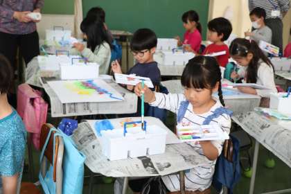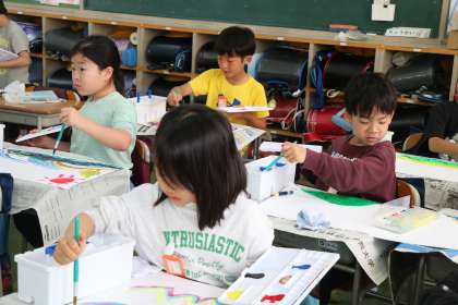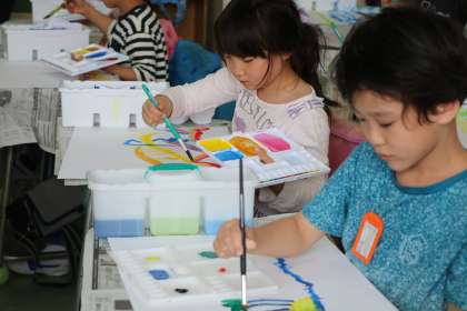 色を作ったり、筆でダイナミックに描いたり、とっても楽しそうです。