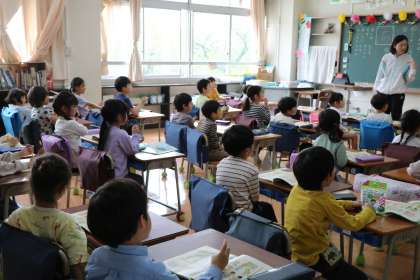 「あ!校長先生ですよ。なんてご挨拶するの?」