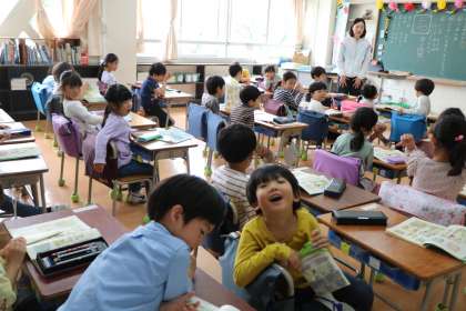 国語「なんていおうかな」の学習です。職員室で担任の先生を読んでもらうとき、朝友達と会ったら、いろいろな先生には・・など勉強しました。