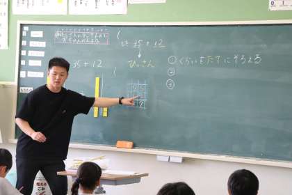 2年生算数の様子です。ひっ算のコツをみんなで確認しながら真剣に学習しています。
